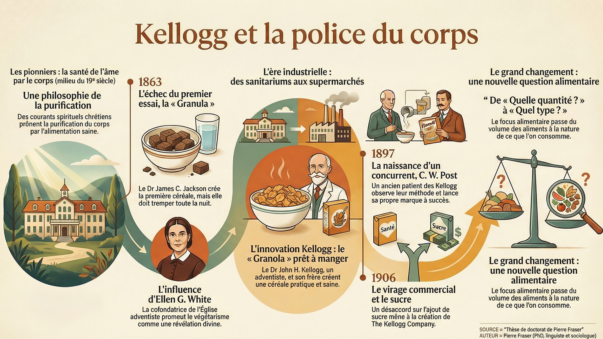 Nées d’un idéal religieux de purification, les frères Kellog ont transformé l’alimentation moderne en norme de santé, inaugurant le primat du « quoi manger ».
