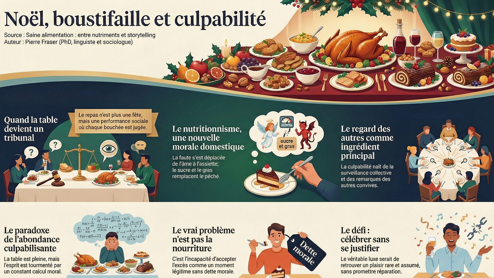 À Noël, cette logique atteint son apogée. Les discours sur l’équilibre alimentaire, la modération et la santé ne disparaissent pas ; ils se suspendent à peine, comme une parenthèse fragile que tout le monde sait provisoire.
