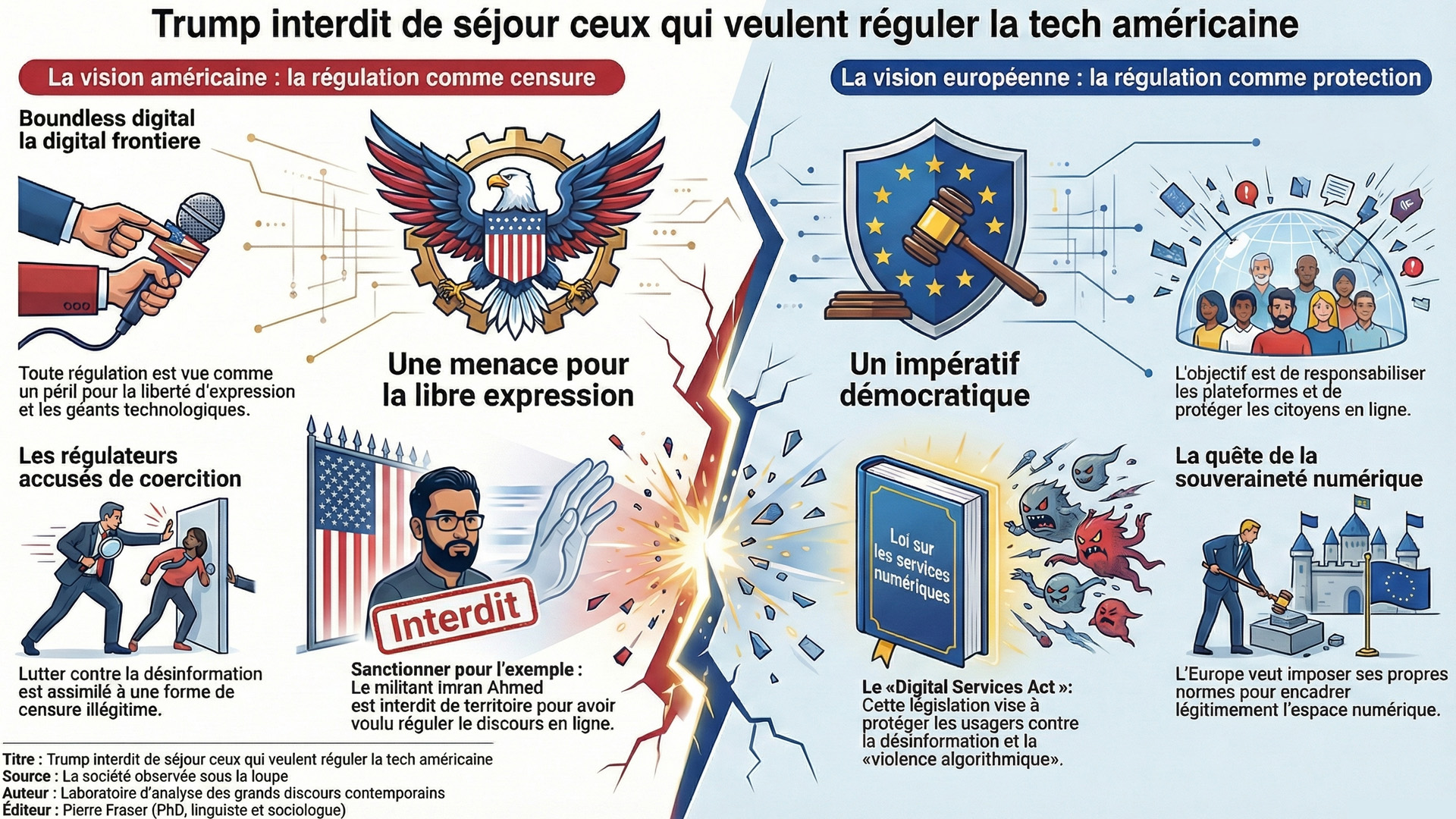 Imran Ahmed, interdit de séjour aux États-Unis, illustre la censure extraterritoriale américaine visant les régulateurs européens.