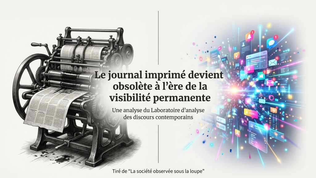 La disparition du journal imprimé n’est pas seulement la fin d’un support. Elle constitue un ajustement presque parfait aux exigences du régime discursif médiatico-spectaculaire, lequel ne pouvait durablement tolérer un objet aussi lent, aussi dense, aussi obstinément indifférent à la mise en scène permanente de l’instant. Le papier, avec sa matérialité encombrante et sa temporalité récalcitrante, faisait tache dans un monde où l’information doit désormais se produire, se commenter et s’épuiser dans le même mouvement. Il n’a donc pas été vaincu. Il a été rendu inutile, ce qui est plus élégant et surtout plus conforme à l’esthétique du spectacle.